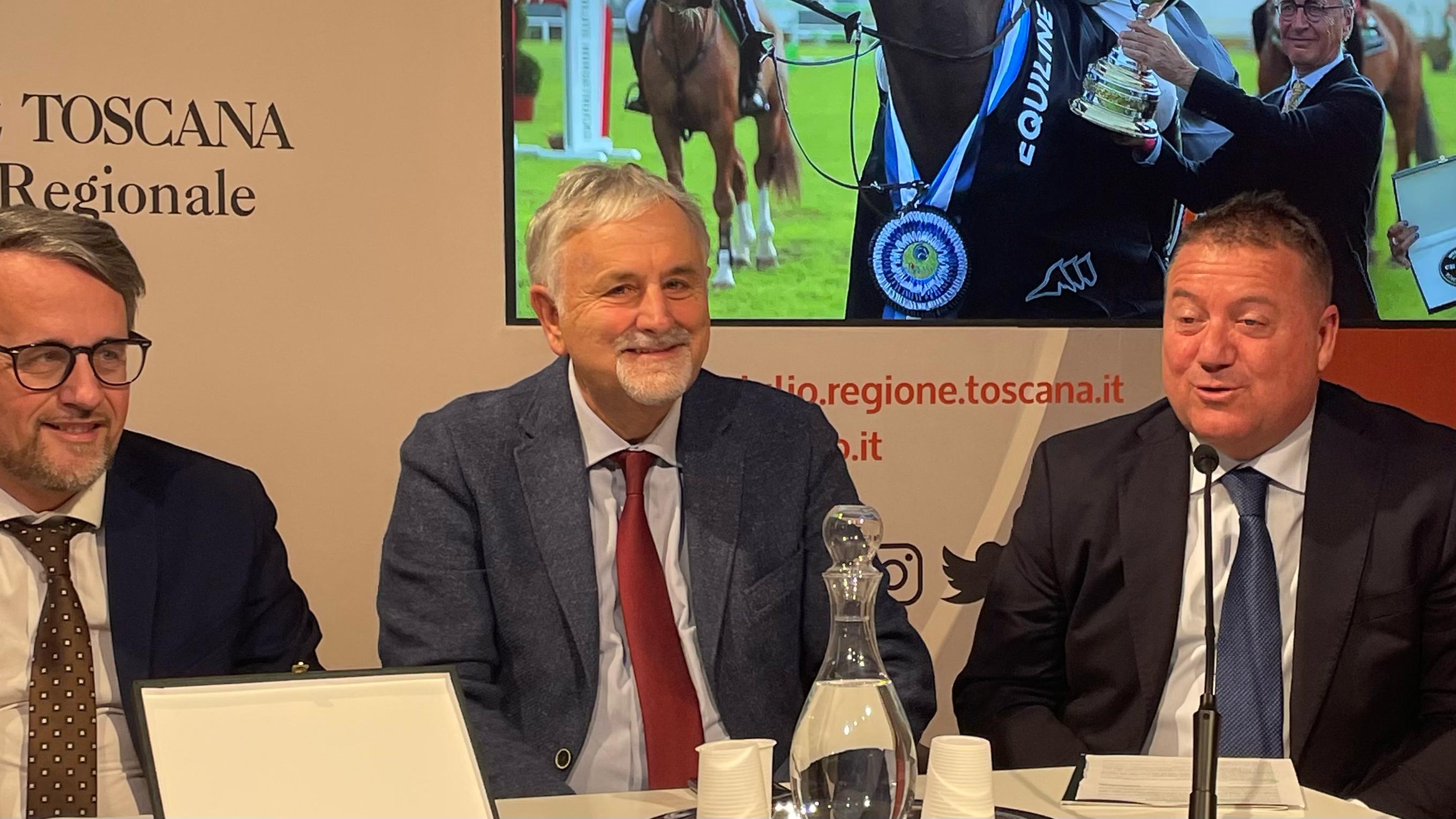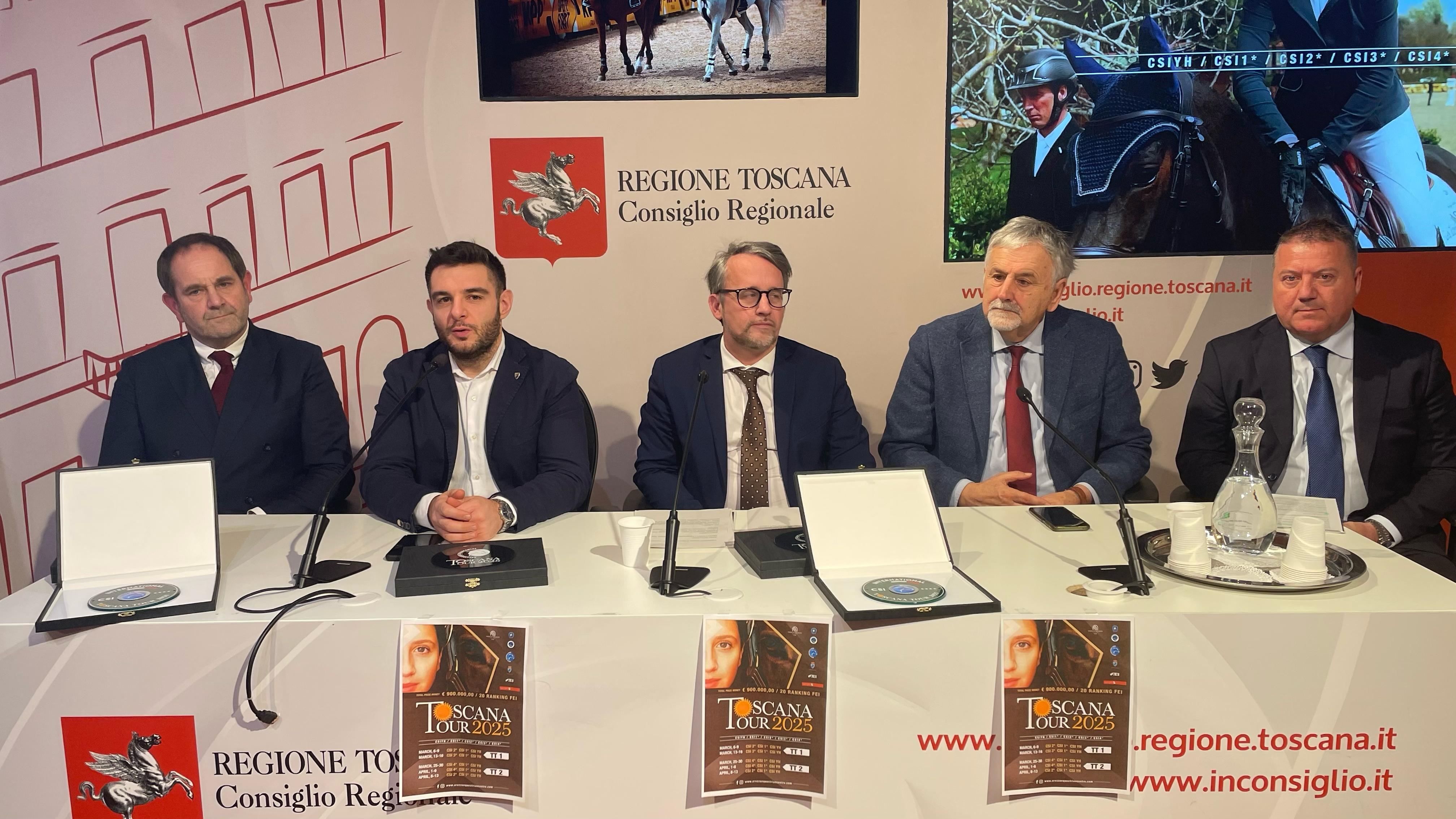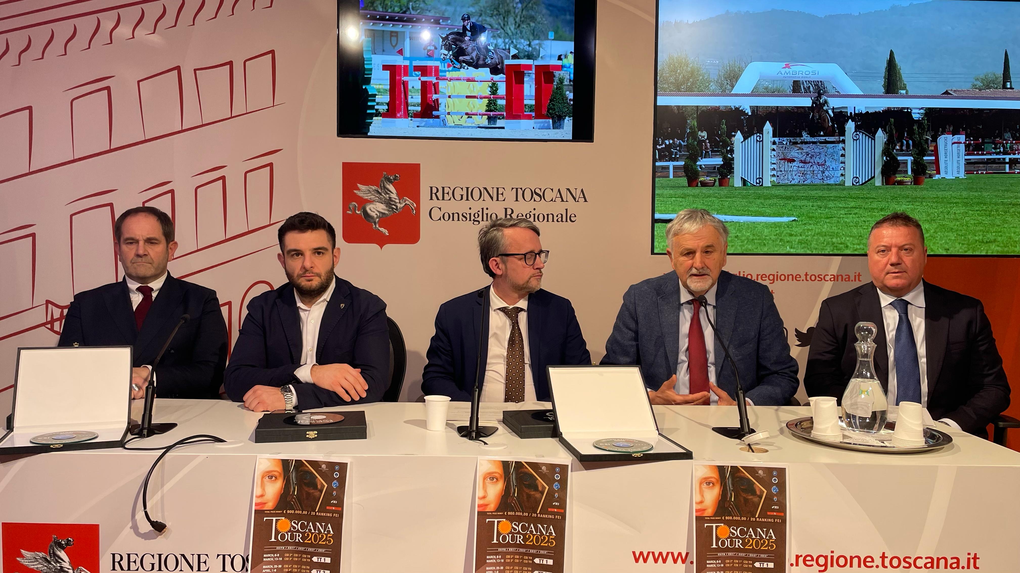 Firenze – Da oggi al 16 marzo e dal 25 marzo al 13 aprile, all’Arezzo Equestrian Centre è protagonista il grande salto ostacoli. Il prestigioso evento internazionale, organizzato con il patrocinio di Regione Toscana, Comune di Arezzo e la collaborazione di Jumping Verona, ospiterà per cinque settimane, cavalieri e amazzoni provenienti da più di 30 nazioni, in lizza per un montepremi complessivo di 900mila euro. La 19esima edizione del Toscana Tour Arezzo è stata presentata questa mattina, giovedì 6 marzo, a palazzo del Pegaso.
