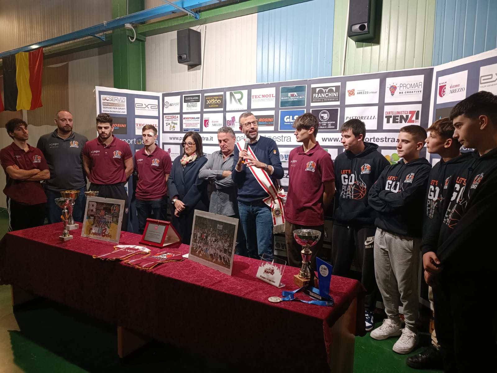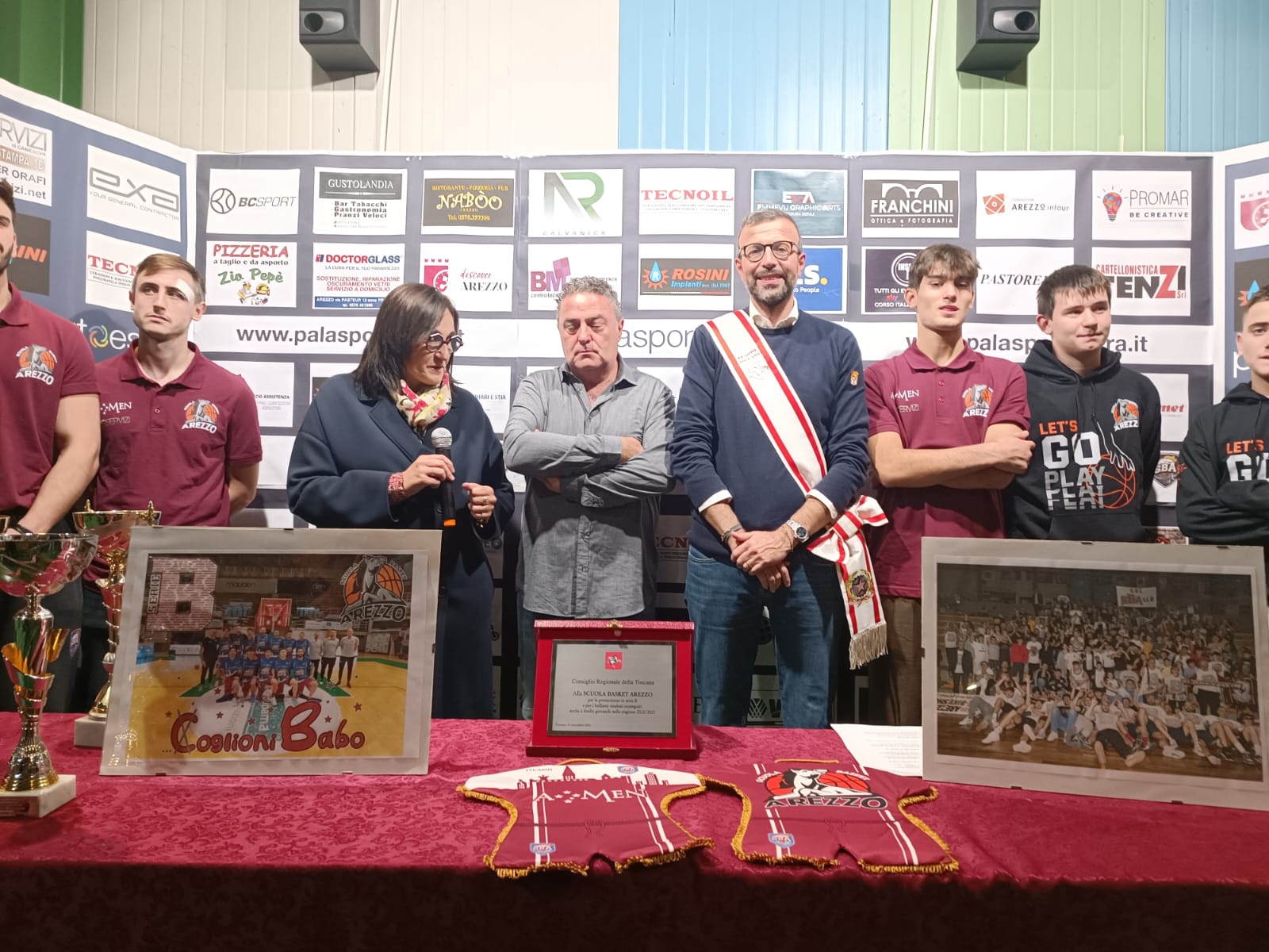 “Investire nello sport vuole dire investire in socialità – ha detto il presidente del Consiglio regionale Antonio Mazzeo – La promozione in serie B dei ragazzi di Marco Evangelisti ha creato un clima di grande entusiasmo intorno alla pallacanestro aretina, come testimoniato dalla grande presenza di pubblico durante le gare dei play off. Questo risultato è il frutto di un impegno collettivo, del lavoro di una società seria, che pone attenzione ai più giovani, ma che sa anche investire sui migliori talenti, sulle migliori energie, per provare a raggiungere risultati agonistici davvero importanti”. “Per questo – ha continuato Mazzeo – insieme alla consigliera Lucia de Robertis abbiamo deciso di conferire questo riconoscimento del Consiglio regionale. In questi anni abbiamo voluto premiare e sostenere chi investe sulle giovani generazioni, chi porta il nome della Toscana in alto. Ed è quello che ha fatto la Scuola Basket Arezzo in questi anni”.