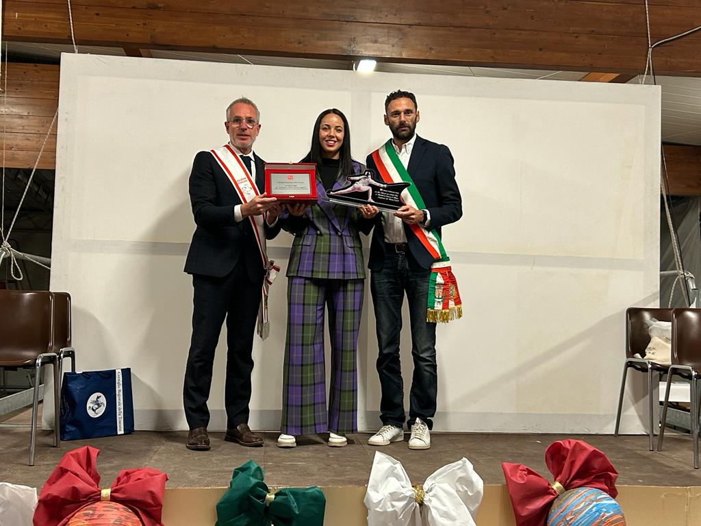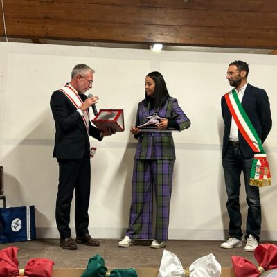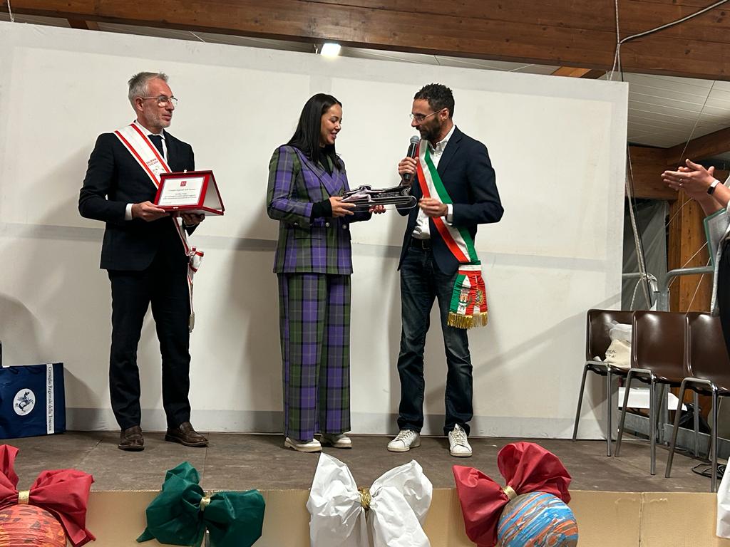 Firenze – La tenacia, la forza, la costanza e anche il sorriso. Alice Volpi, giovane campionessa senese, oro nel fioretto individuale e a squadre ai Mondiali di Milano 2023, è stata premiata a Ponte d’Arbia dal vicepresidente del Consiglio regionale della Toscana Stefano Scaramelli e dal sindaco di Monteroni d’Arbia Gabriele Berni nel corso di una cena di beneficenza sabato 28 ottobre nei giardini della Casa del Popolo.