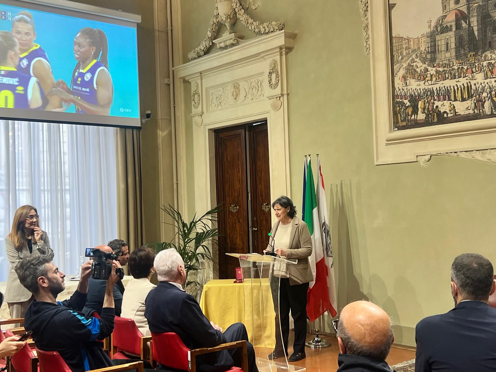 “Oggi conferiamo il Gonfalone d’Argento alla Savino Del Bene Volley, un riconoscimento deciso nei mesi scorsi e consegnato oggi compatibilmente con gli impegni della squadra – ha detto la presidente Stefania Saccardi – Questo premio nasce da un risultato straordinario: la vittoria del Campionato del Mondo per club 2025 in Brasile, un traguardo che rende orgogliosa tutta la Toscana. Savino Del Bene è una realtà fortemente radicata nel territorio che, in poco più di dieci anni, ha raggiunto i vertici della Serie A1 e del panorama internazionale, grazie al valore delle atlete, dello staff e dell’intero club. Guardiamo con fiducia ai prossimi impegni europei, con l’auspicio che la squadra continui a portare in alto i colori della Toscana. I successi di questa squadra sono anche un esempio per i giovani – ha concluso Saccardi – lo sport non è solo competizione, ma educazione, socialità e crescita. È questo il risultato più importante, reso possibile anche dal lavoro prezioso di tante associazioni e volontari sul territorio”.