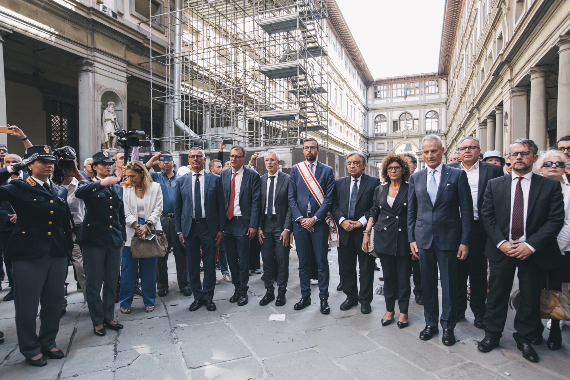 Nel piazzale degli Uffizi, con il presidente dell’Assemblea legislativa Antonio Mazzeo, Tina Montinaro, presidente dell’associazione ‘Quarto Savona 15’ e  vedova di Antonio Montinaro, capo scorta che fu ucciso quel giorno insieme a Giovanni Falcone, Francesca Morvillo e agli altri agenti Vito Schifani e Rocco Dicillo, ci sono le autorità, il questore della provincia di Firenze, Maurizio Auriemma, i giovani del Parlamento degli studenti per un momento di raccoglimento, dopo che il trombettiere ha eseguito il silenzio di ordinanza.