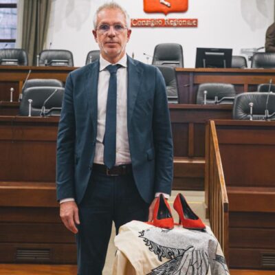 Da oggi fino al 25 novembre, giornata internazionale contro la violenza sulle donne, la facciata del palazzo del Pegaso sarà illuminata di rosso, il colore che simboleggia la lotta contro ogni forma di violenza nei confronti delle donne. Oggi, al centro dell’aula consiliare, un paio di scarpe rosse. I messaggi del presidente e del vicepresidente del Consiglio, Antonio Mazzeo e Stefano Scaramelli