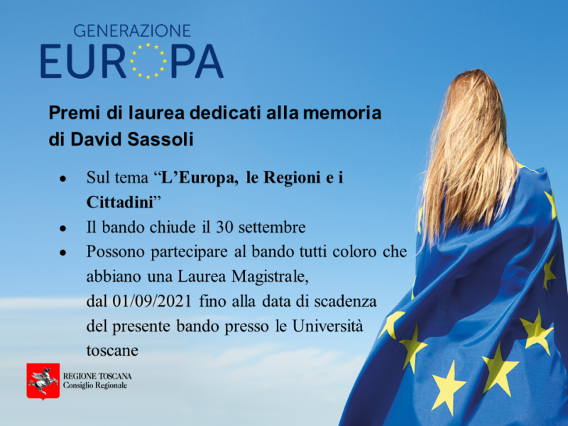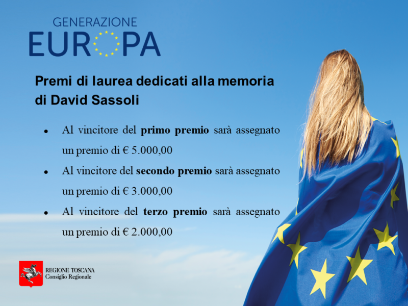 Infografiche PREMI DI LAUREA “DAVID SASSOLI”_IG 2 Agosto 2022 Scarica tutti i media Bando-Sassoli-ig-1.png0.88 MB Bando-Sassoli-ig2.png0.9 MB Bando-Sassoli-ig3.png0.89 MB Responsabilità di contenuti, immagini e aggiornamenti a cura dell’Ufficio Stampa del Consiglio regionale della Toscana