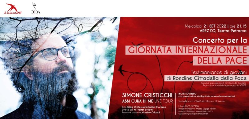 Il concerto di Simone Cristicchi ‘Abbi cura di me’, con la musica dell’Orchestra Instabile di Arezzo e i giovani di Rondine