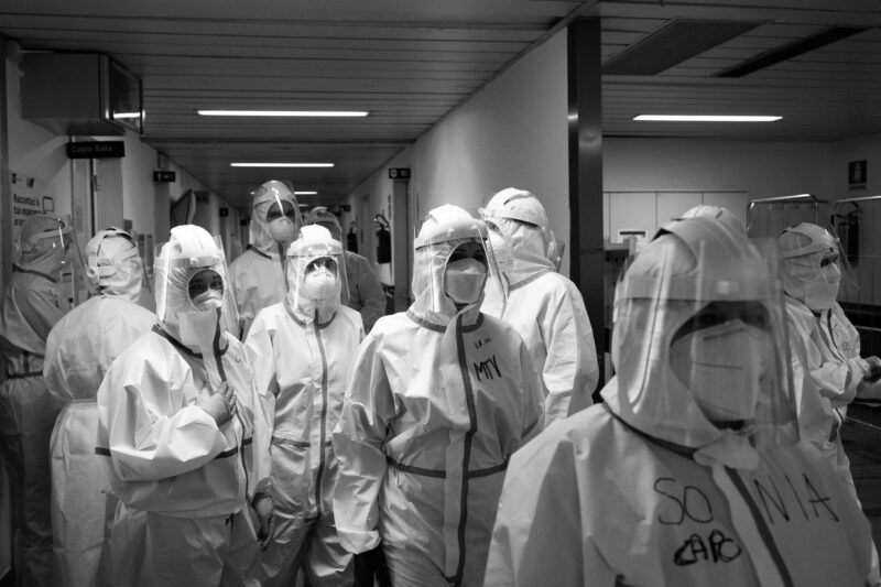 La mostra, promossa da Lumen, associazione culturale composta da fotografi e videomaker indipendenti, si compone di 40 immagini simboliche, scattate da fotogiornalisti e fotogiornaliste italiani; sono immagini di chi è riuscito a restituire un racconto oggettivo e veritiero della vita stravolta dal virus, ma anche di situazioni in grado di sensibilizzare, creare empatia e al tempo stesso informare. Un lavoro complesso che i fotogiornalisti/e hanno compiuto giornalmente, addentrandosi nelle storie dei connazionali, talvolta vicini di casa o amici, in quanto la storia, per questa volta, si è trovata a bussare direttamente alla porta di tutti noi.
