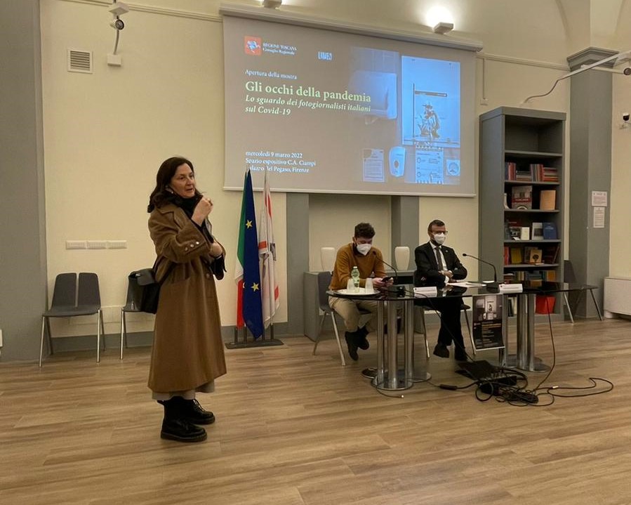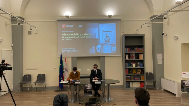 Si è inaugurata oggi, mercoledì 9 marzo, nei locali dell’Expò Comuni al piano terra di Palazzo del Pegaso la mostra fotografica “Gli occhi della pandemia. Lo sguardo dei fotogiornalisti italiani sul Covid-19”. All’inaugurazione sono intervenuti il Presidente del consiglio regionale, Antonio Mazzeo, e il presidente dell’associazione Lumen, Enrico Mattia Del Punta.
