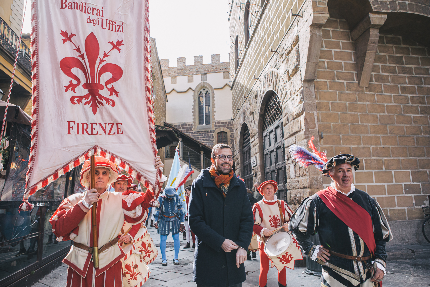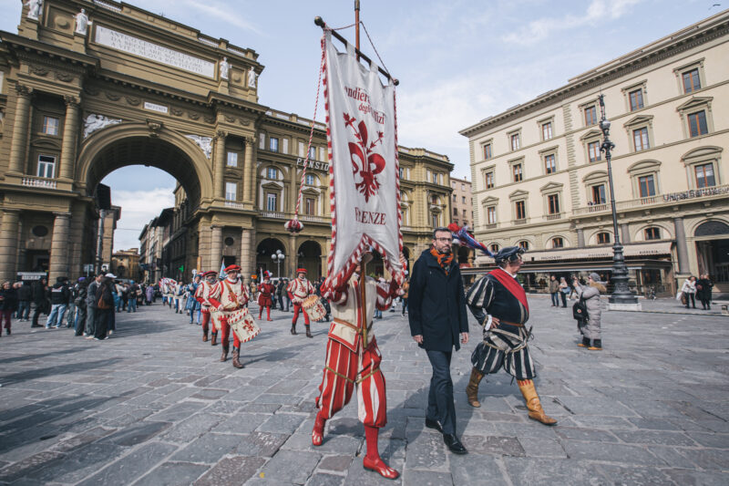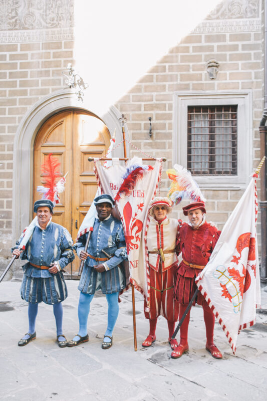 Gonfalone d’argento ai Bandierai degli Uffizi, il corteo e lo spettacolo in palazzo del Pegaso